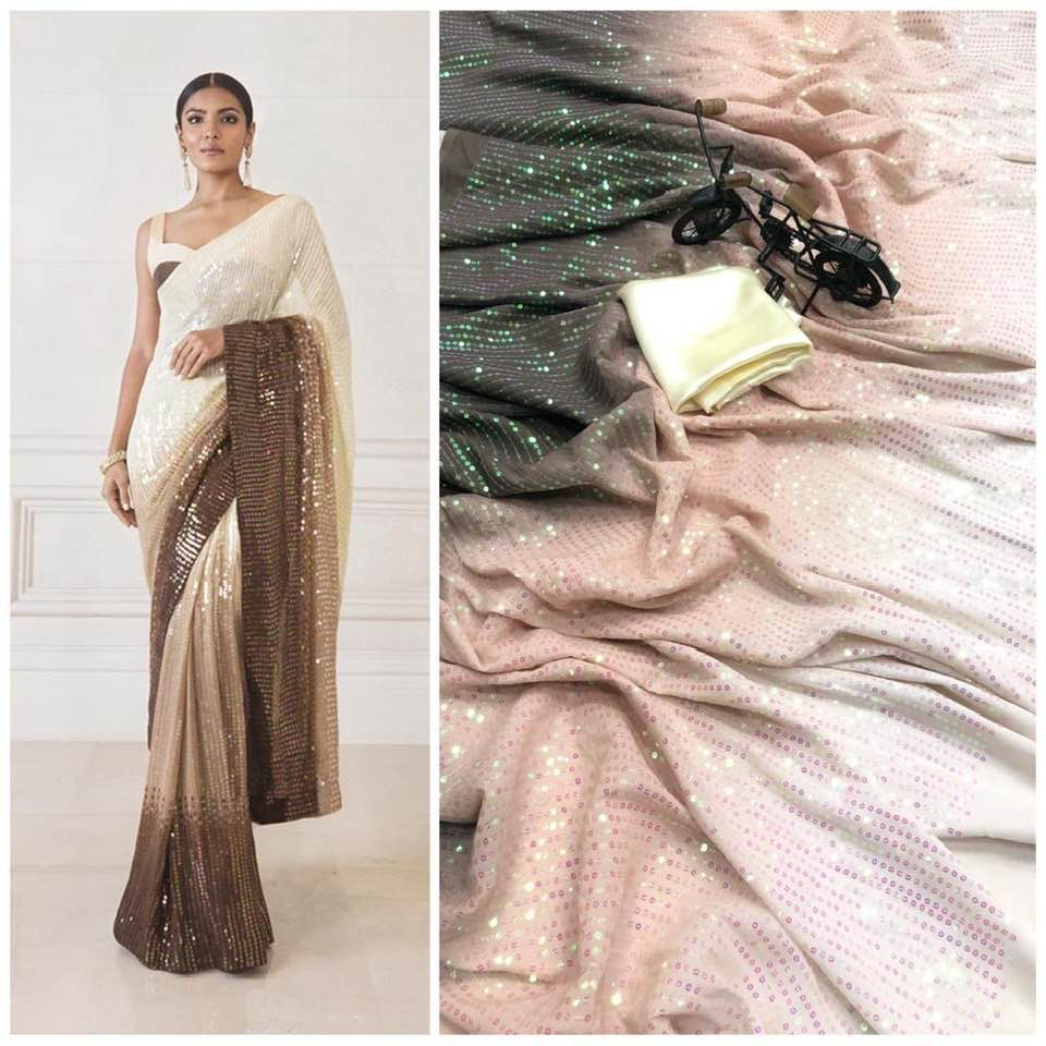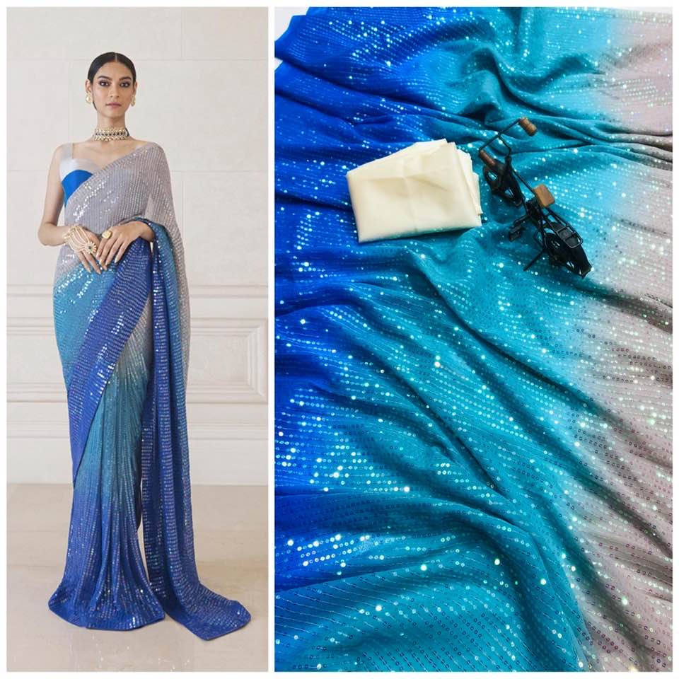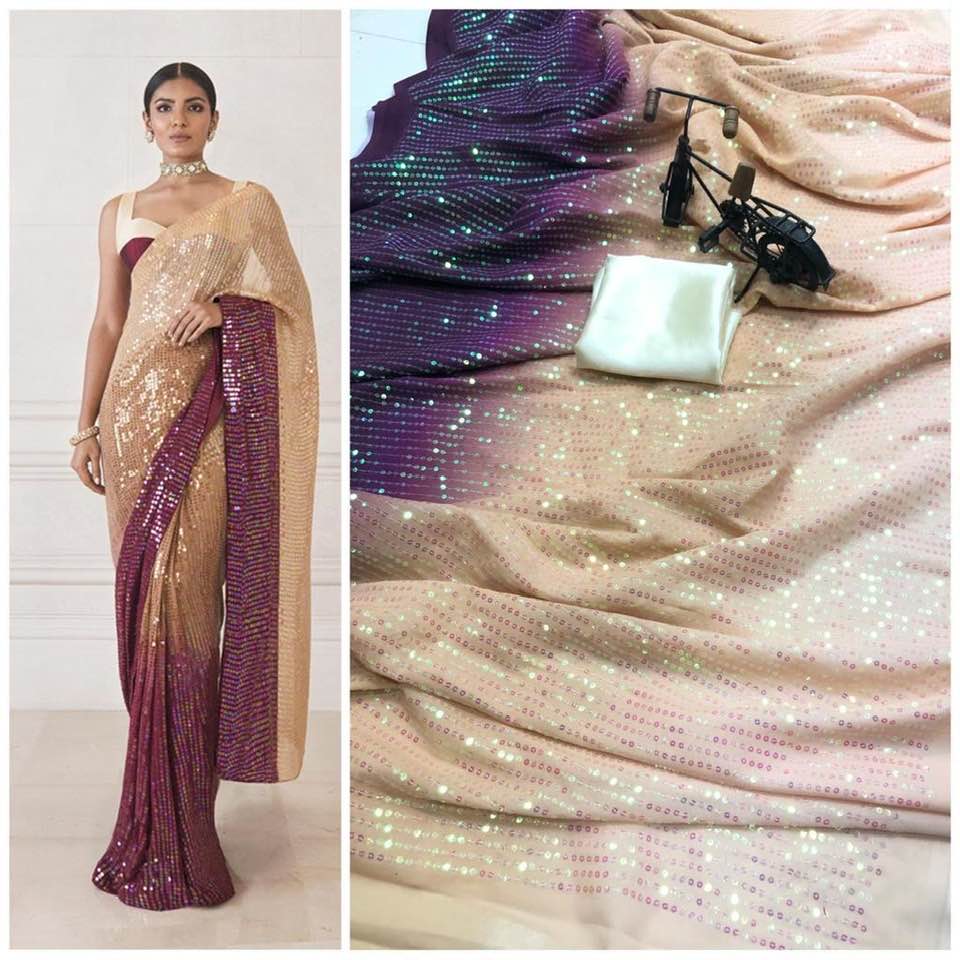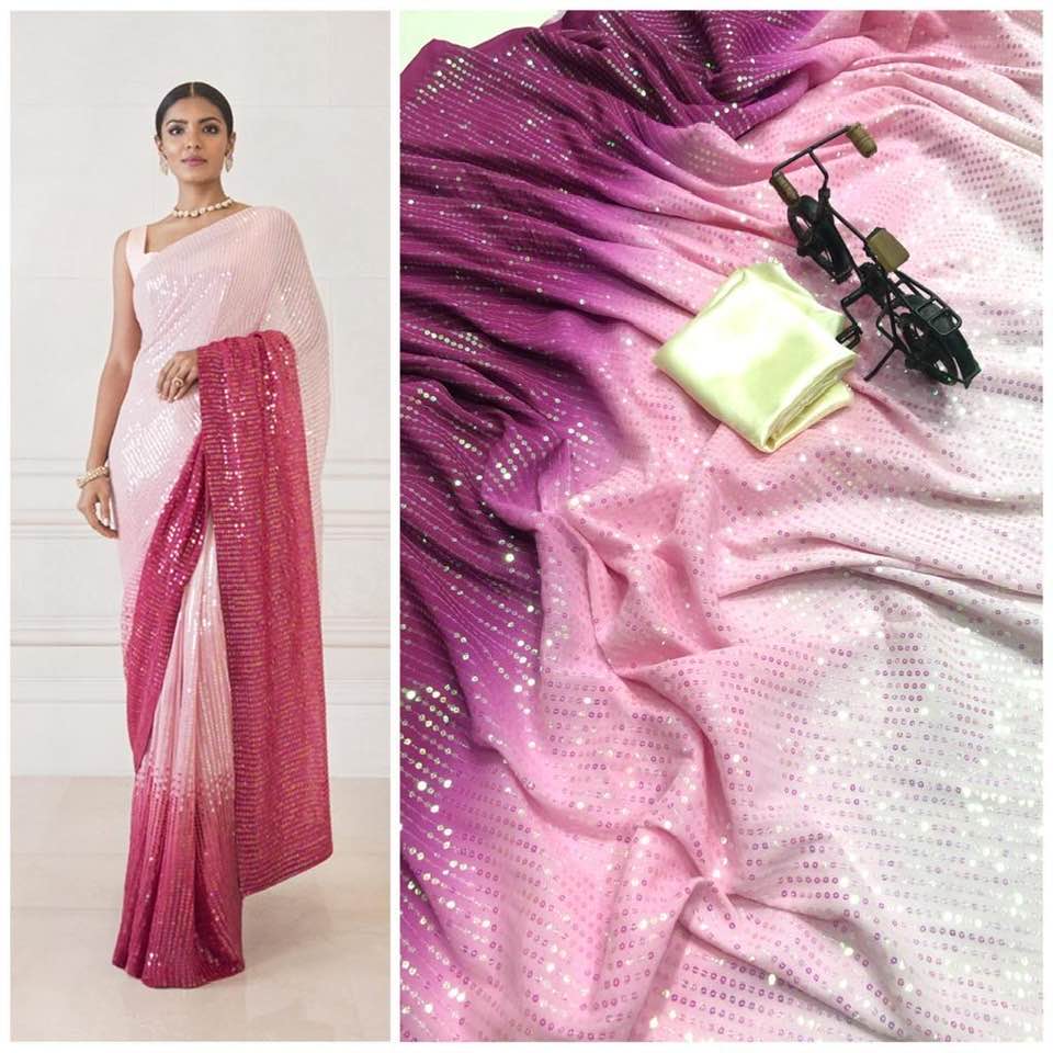 Full Saree Of 60 Gram Georgette *3D EFFECT* With Heavy 5MM RAINBOW Sequence Embrodery Work