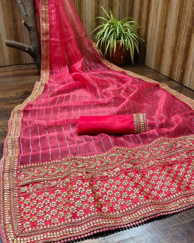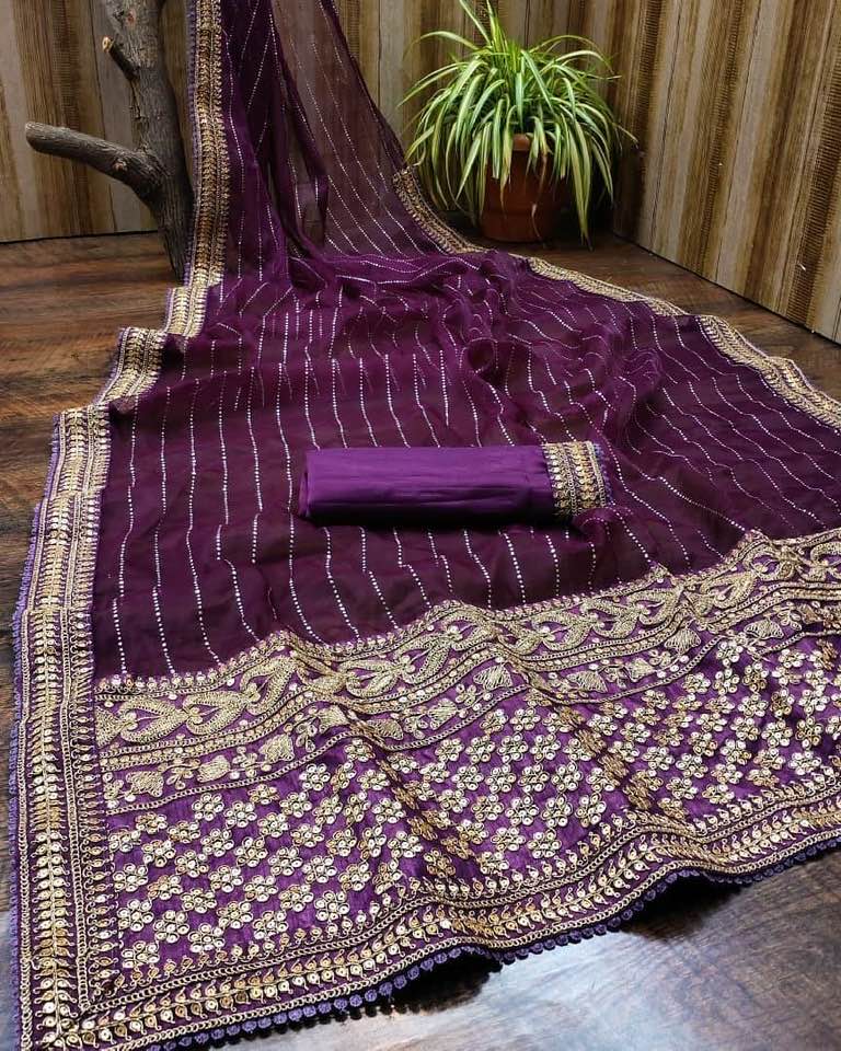 *WORK 😘 Beautiful Maukesh Work allover in Saree with Cording Sequence Embroidered Work Border