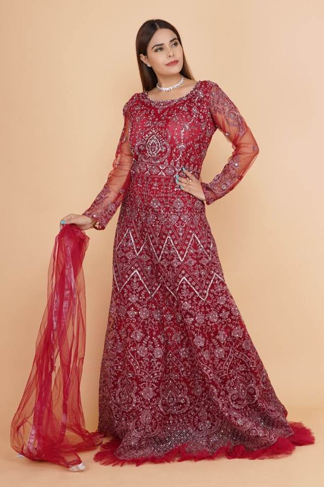 Pure net front back embroidered beautiful gown Wd bottom n duppta