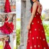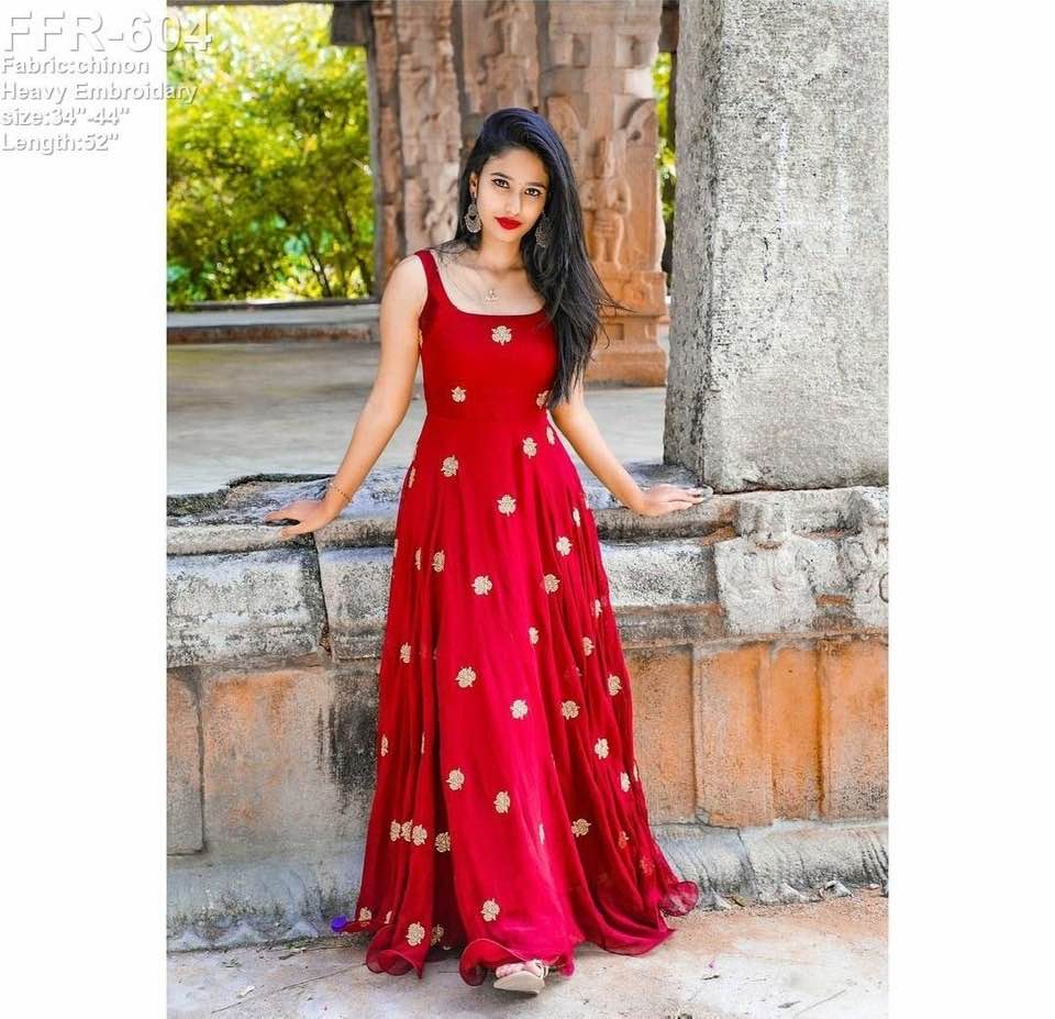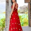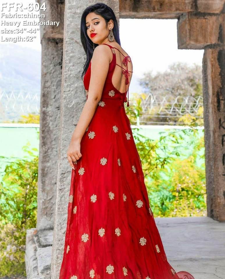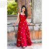 This beautiful maxi dress is curated with all over work finest gold Embroidery and lining inside.