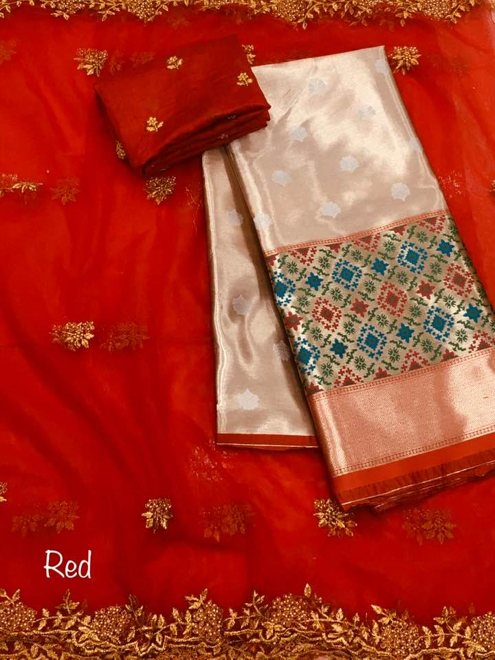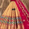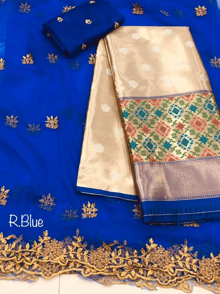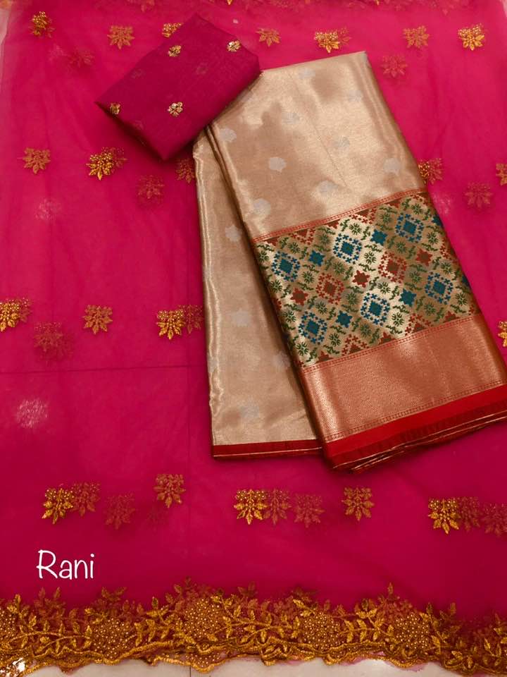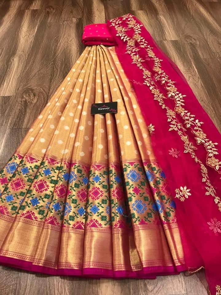 *Pure tissue paitani weaving Lehangas ,with contrast blouse and contrast cut work voni*