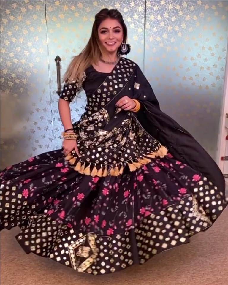 Work : *Digital print with real mirror and fancy latkan Lace broder*
