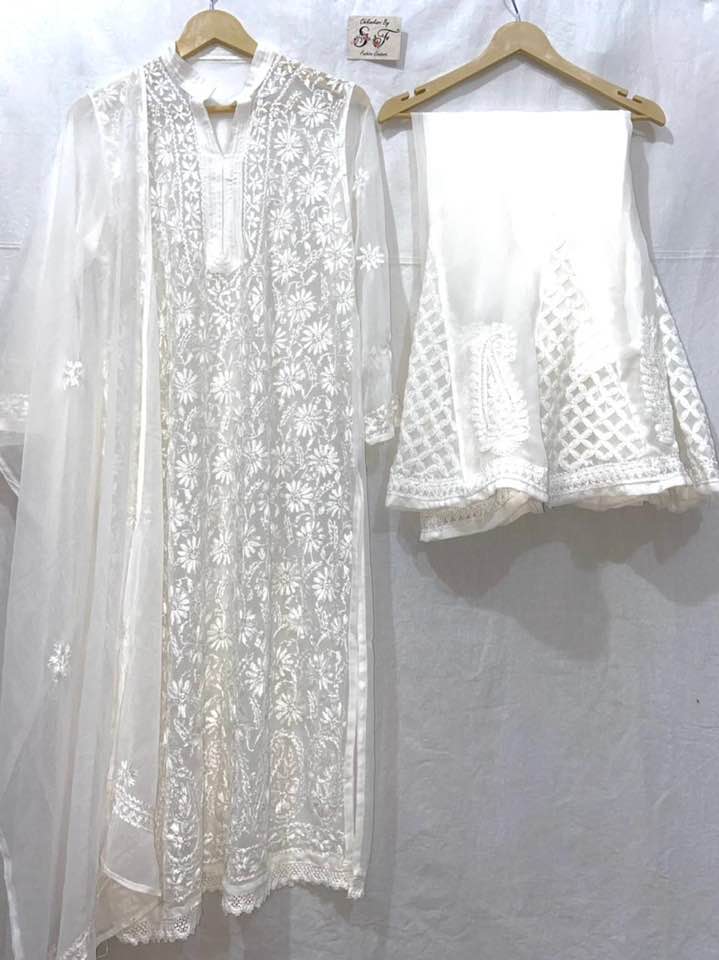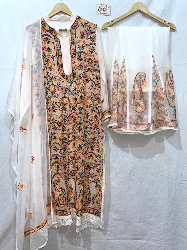 ✅ *Beautiful Thread Full Jaal With Crochet Lac on Border n chikankari Kurti*
