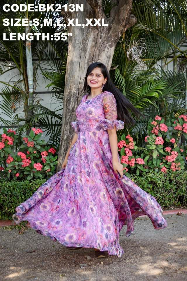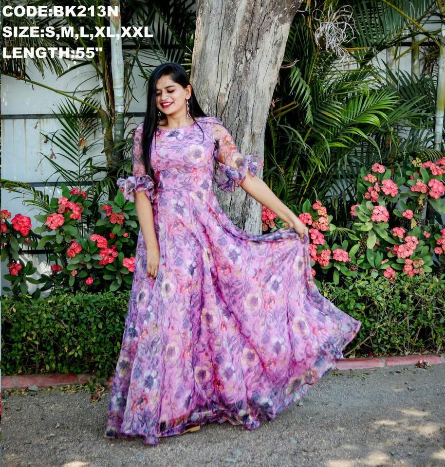 We would love to go Floral all the time like you! This Floral printed Organza maxi dress is uniquely designed with ruffle elbow sleeves. It is giving perfect stylish look for this season.