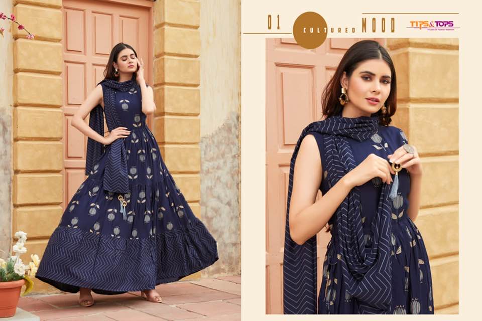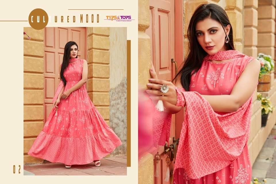 *Party Wear Heavy Reyon Printed Long Gowns With Printed Dupatta*