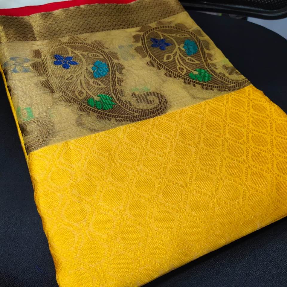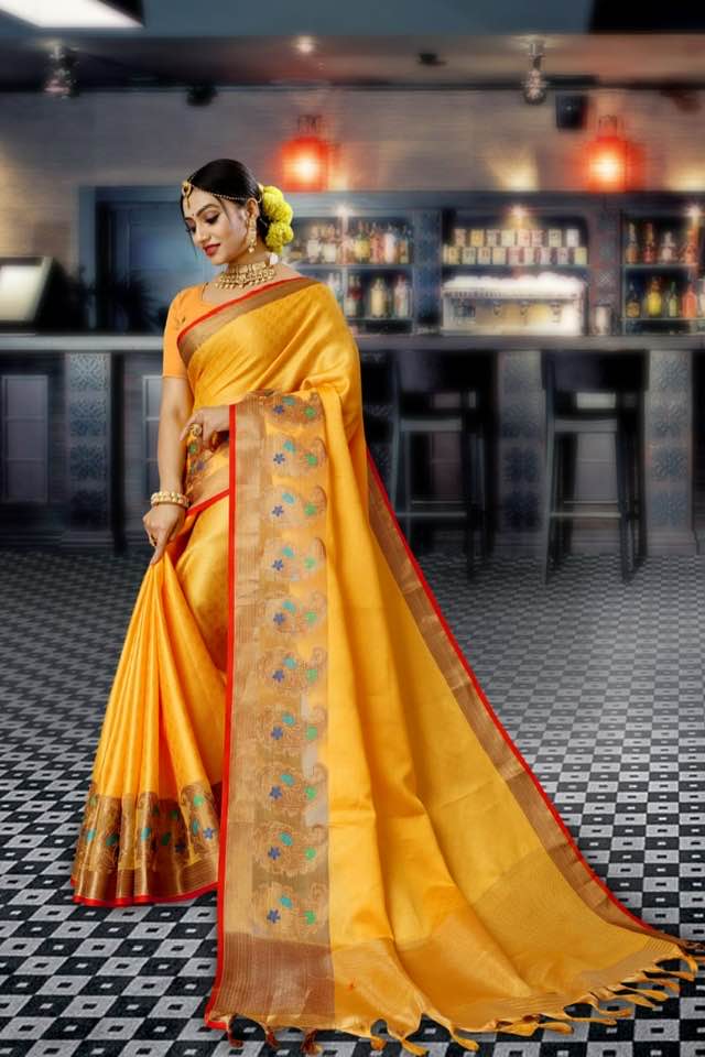 🌹Drape in this exclusive rich blended *Kora muslin* sarees with attractive border and pair it up with a rich looking contrast weaving matching BLOUSE! 🌹