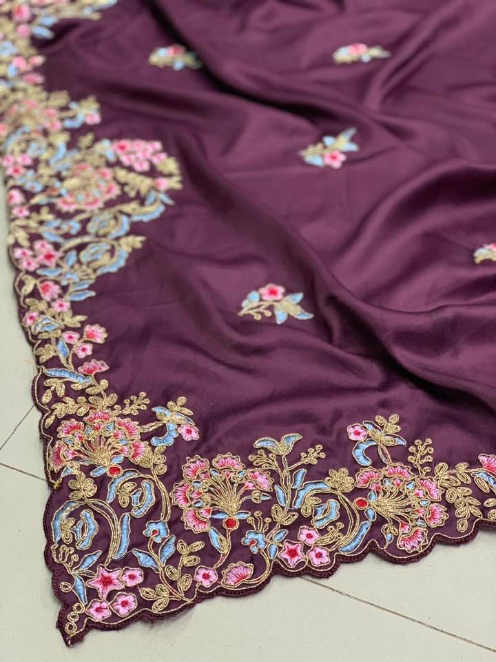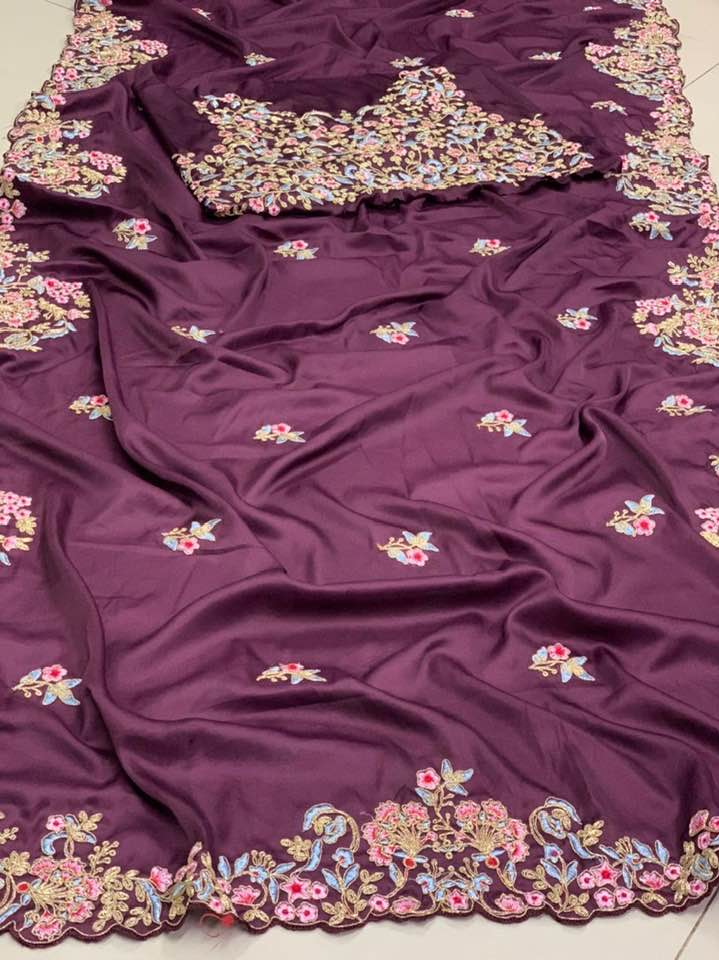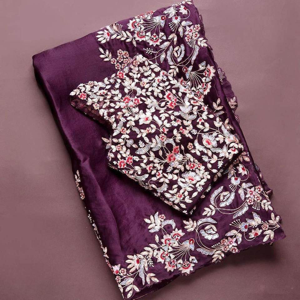 Work : Embroidery sarees with arc cutting border and embroidery butta in whole sarees and fully embroidery work unstiched blouse
