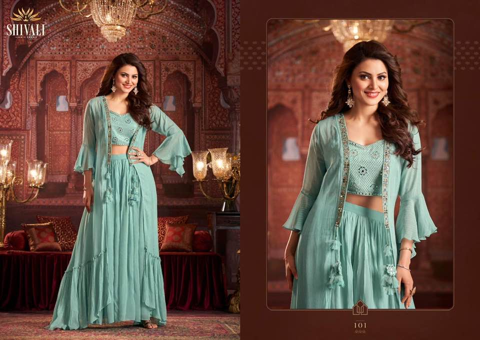 *Shivali Fashion* presents *Alisha Volume 8* a 3 piece set of 5 designs to refresh your collection in an effortless way with these bright & statement outfits!